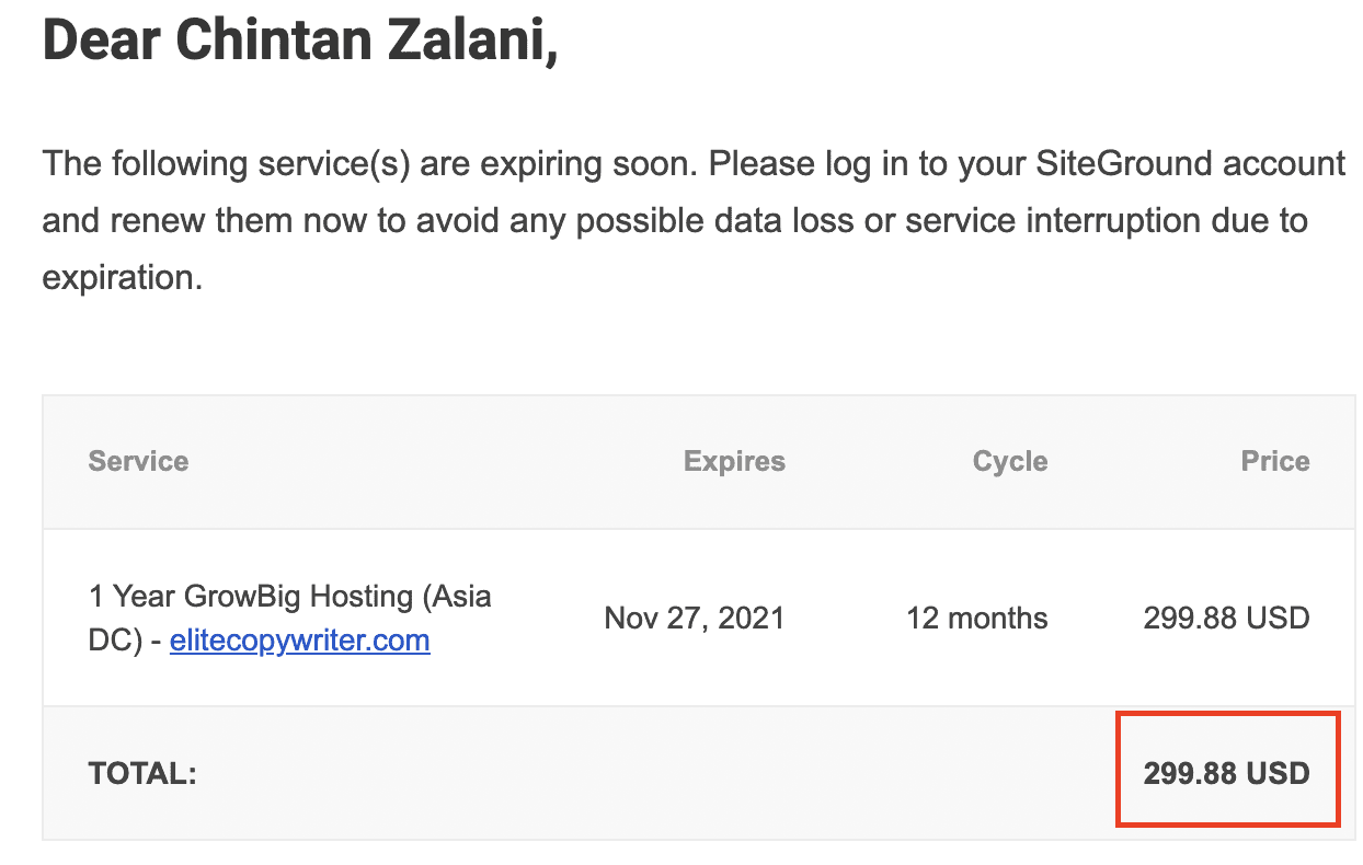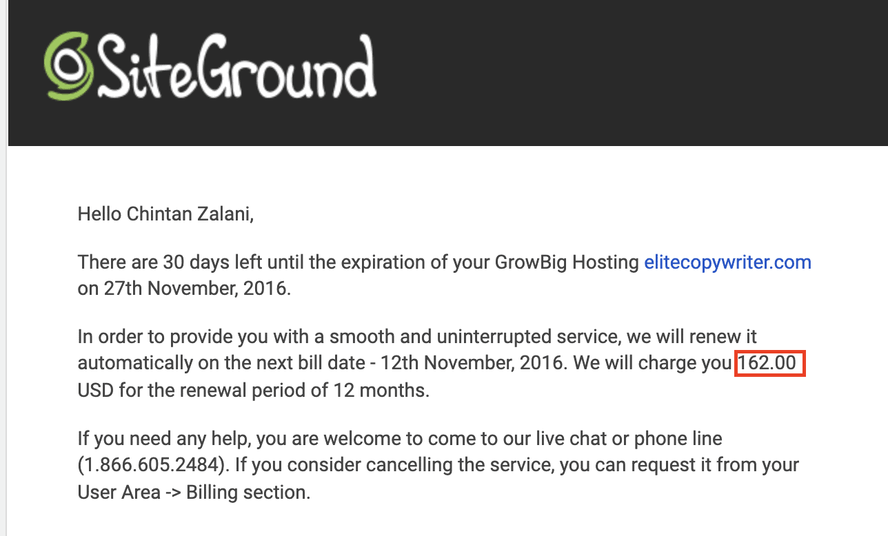 For instance, I have had a Siteground GrowBig account for a few years now. Its renewal price was at $162 in 2016: