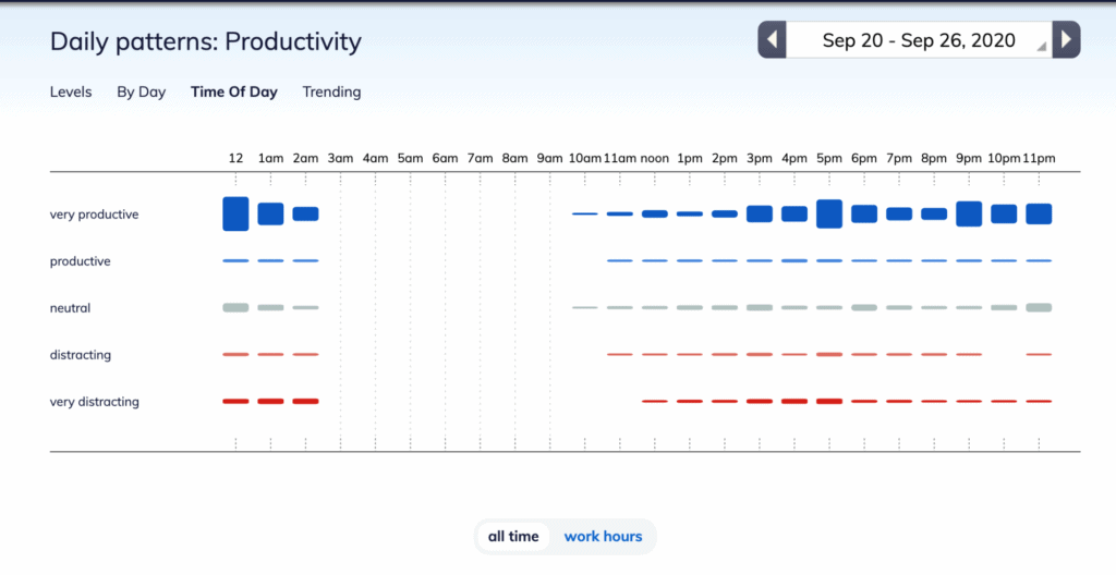 With tracked data, you can dissect the times of the day when you’re the most productive vs. distracted.