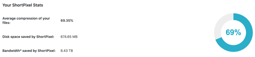 If you’re using WordPress as your content management system, the Shortpixel Image Optimizer plugin can help. It works its magic to compress your images while uploading without sacrificing their quality. Look at the disk space and bandwidth that this plugin has saved me.