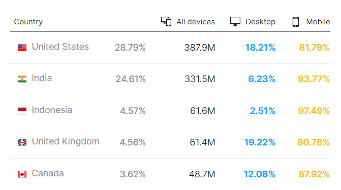6. Most of Quora’s traffic comes from the United States. (SEMRush)