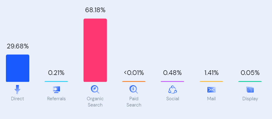 7. Quora receives close to 70% of its traffic from regular internet searches, while the rest comes from direct searches. This is not smartphone app data, but website traffic data. (Similarweb)