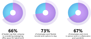 2. 66% of business decision-makers are considering redesigning physical spaces to accommodate hybrid work environments better. (Microsoft)