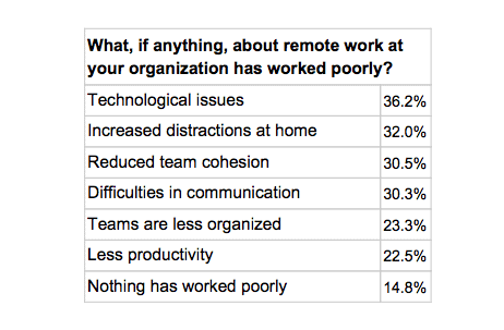Sudden employment of remote work posed difficulty for employees with no adequate training or support.