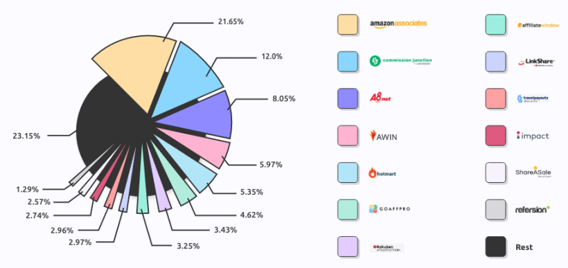 6. Amazon Associates holds more than 20% of the market share in the affiliate marketing industry. (Influencer Marketing Hub)