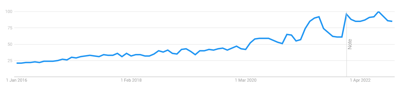 7. The search for affiliate marketing rose by over 400% between 2016 and 2022. (Google Trends)