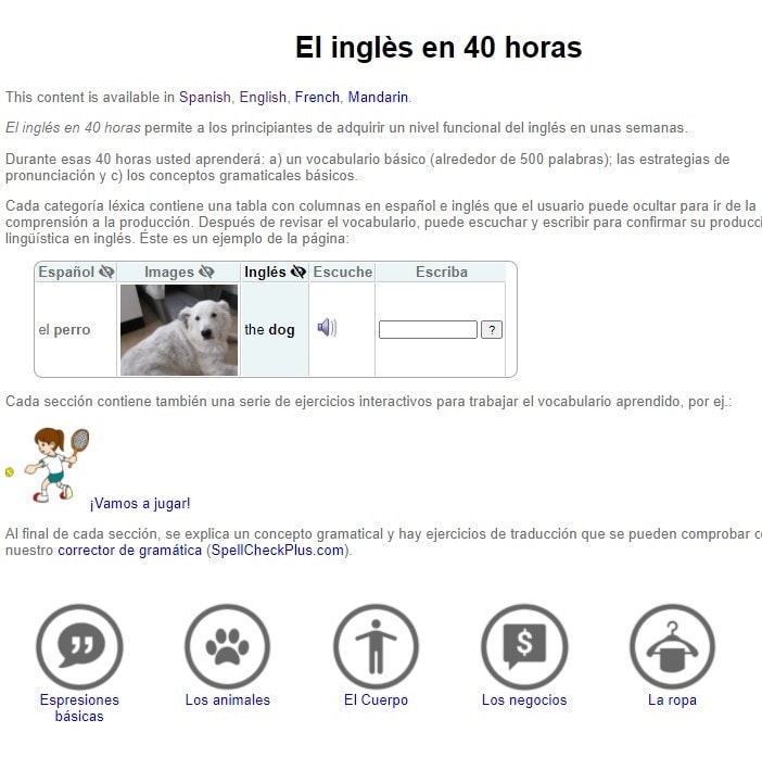 SpellCheckPlus vocabulary provides learning tutorials on their website. Linguistic principles and basic building blocks of a new language are available in this feature.
