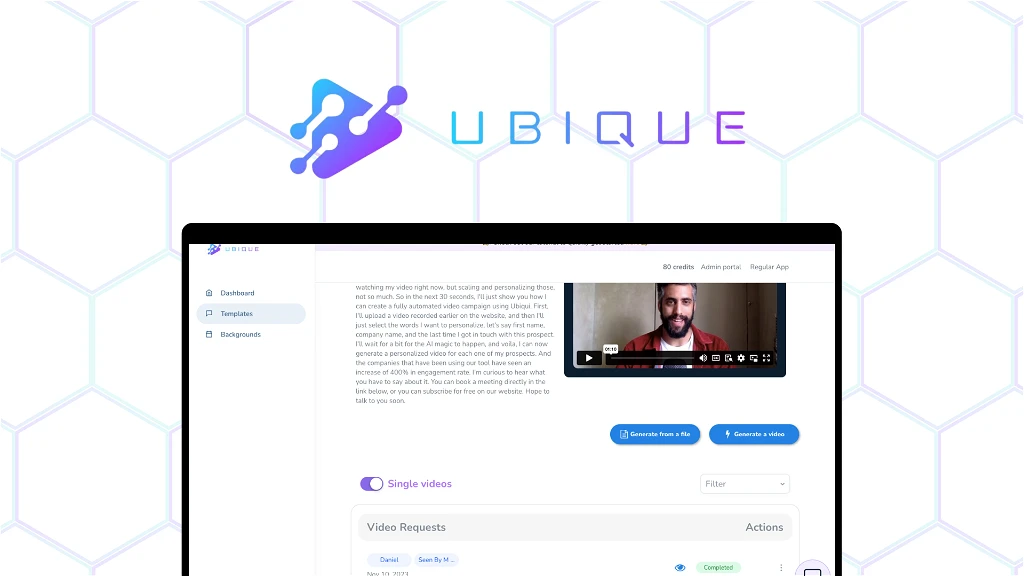 Ubique uses AI avatars and voice cloning to personalize the same sales video for hundreds of prospects. Record one message, drop in a CSV of names and companies, and Ubique generates individualized variants with the recipient’s name spoken on camera. Sales teams doing cold outbound at scale are the obvious fit.