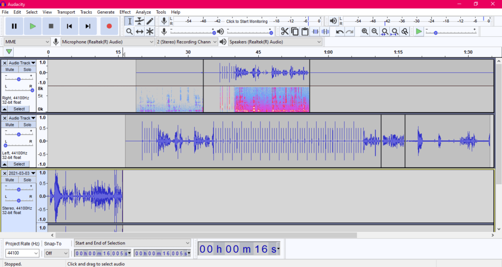 Where it frustrates: The interface still looks like 2008. Multi-track recording isn’t enabled by default, you add tracks one at a time. No transcript-based editing, no cloud collaboration. Fine for solo audio work, painful for remote interviews.