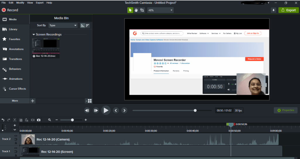 You can record the webcam simultaneously with your screen. This feature is quite useful when you’re making instructional videos.