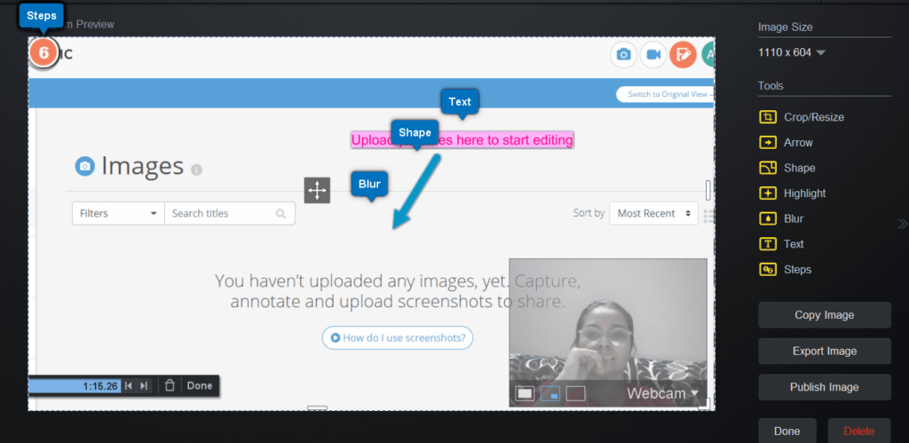 You can simultaneously record your webcam and screen. Customization is also an option by adding annotations, cropping, and resizing images, blurring, and highlighting different areas.
