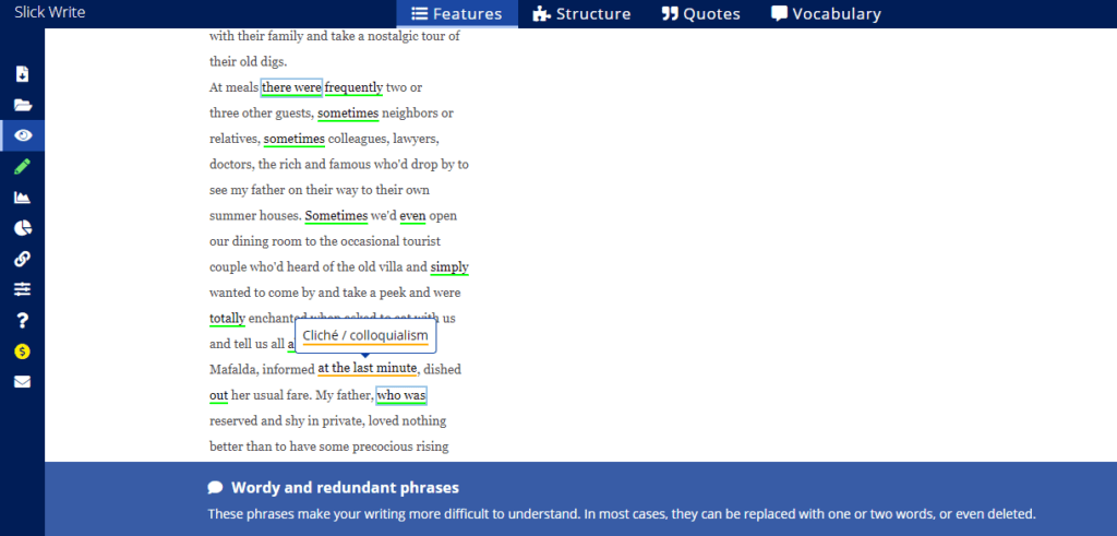 Professional writers and students alike can benefit from this software. It offers extensions for Google Chrome and Firefox. Slick Write detects spelling errors of all kinds. Fiction writers can benefit from its word associator tool. It helps bust the writer’s block and create new metaphors. It provides accurate spelling suggestions and a readability score. Slick Write also has advanced features like a comprehensive report with graphs to track word count, sentence structure, text flow, passive voice use, and more.