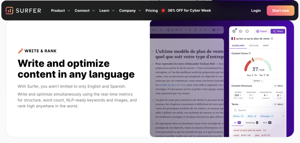 Surfer SEO: If you’re driving traffic via SEO for your website, Surfer is a must have tool that can help you with on page SEO. It analyses the top ranking results for your target keyword. Then shares insights on the keyword phrase combinations you need to optimize your content for, and give yourselves the best chance to rank in SERPs.