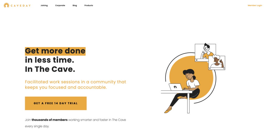 Caveday: Multitasking is one of the quickest ways to feel exhausted and (not) get work done. Caveday is a virtual community of knowledge workers that helps you monotask one 50-minute session at a time and stay accountable while doing so.