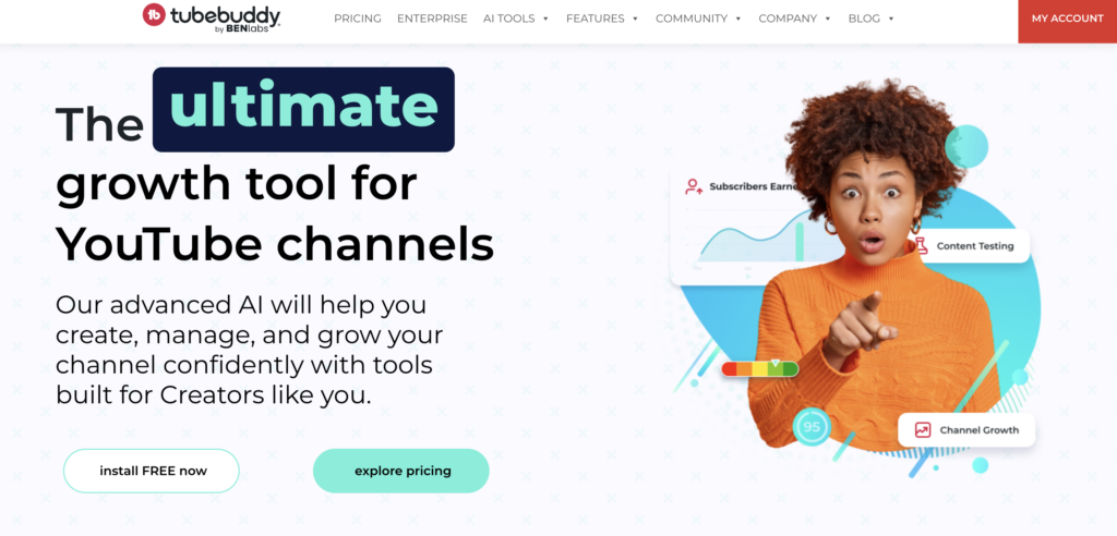 TubeBuddy: TubeBuddy is a great market research and analytics tool for your YouTube channel. It can help you fine tune your content ideas, dissect the popular videos of your competitors, and even streamline your YouTube workflow. Overall a great tool to get more YouTube views and subscribers.
