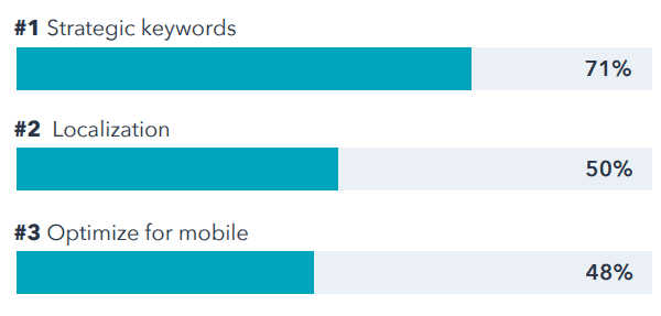 1. Using strategic keywords is the number one SEO marketing strategy, according to 71% of marketers. (HubSpot)