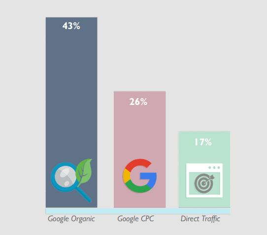 2. 43% of Ecommerce traffic comes from organic Google searches. (Wolfgang Digital)