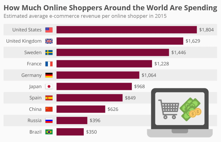 3) Each US customer is expected to spend an average of $1,800 annually on Ecommerce. (Statista)