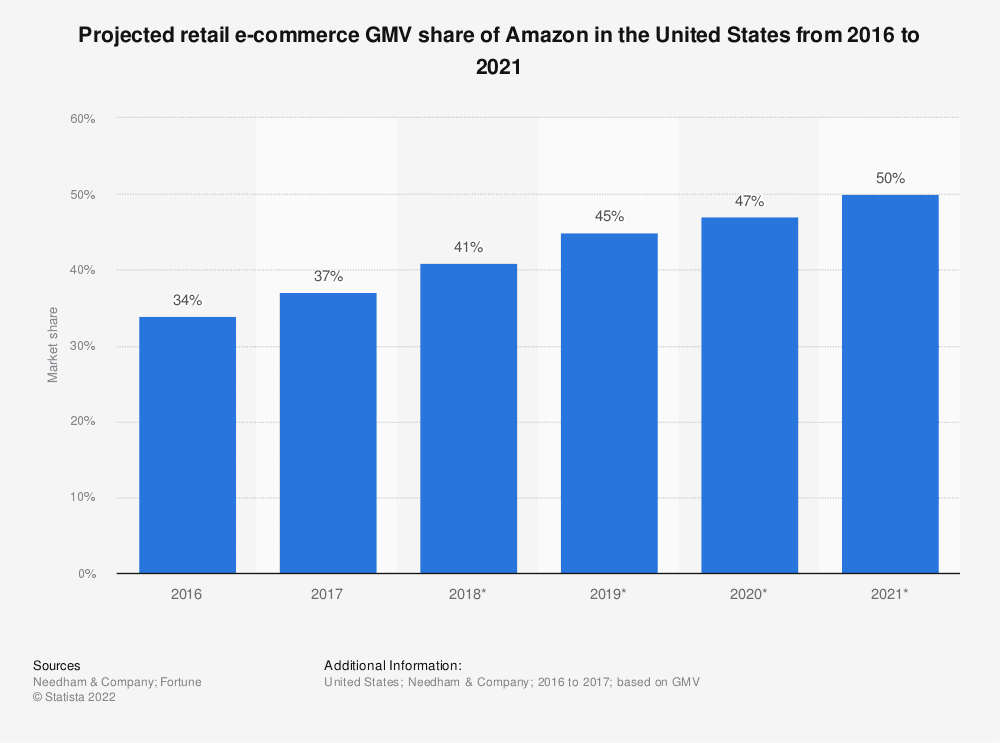 4. Amazon accounted for 50% of all US Ecommerce sales as of 2021. (Statista)