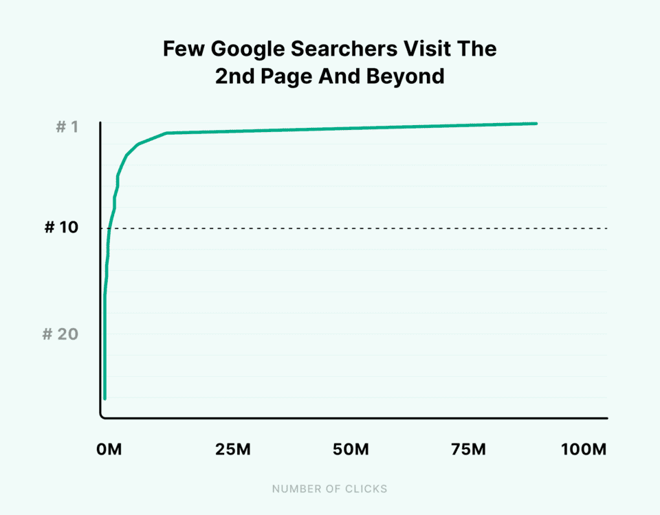 5. Only 0.78% of Google searches went to the second page and clicked on something. (Backlinko)