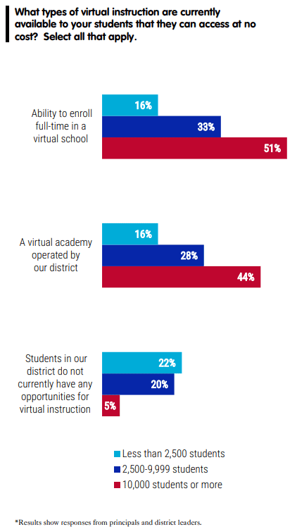 1. According to a survey of 888 K-12 educators, 51% of students have the ability to enroll in virtual school, where the school has over 10,000 students. (EdWeek Research Center)