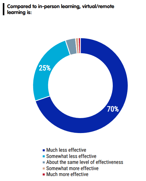 2. The report also shares that 95% of K-12 educators consider online learning less effective than classroom learning. (EdWeek Research Center)