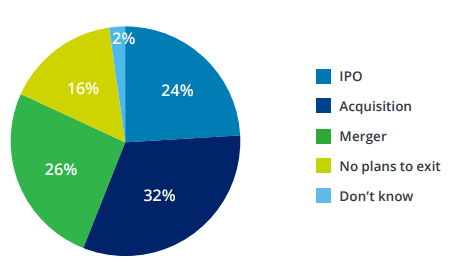 2. 32% of startups, as per a recent survey, considered acquisition as their exit strategy. (Startup Benchmarking Survey)