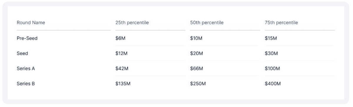 6. Median valuation of a Pre-Seed startup in the 50th percentile was about $10 million, while the valuation of a Series B 50th percentile startup was $250 million. (AngelList)