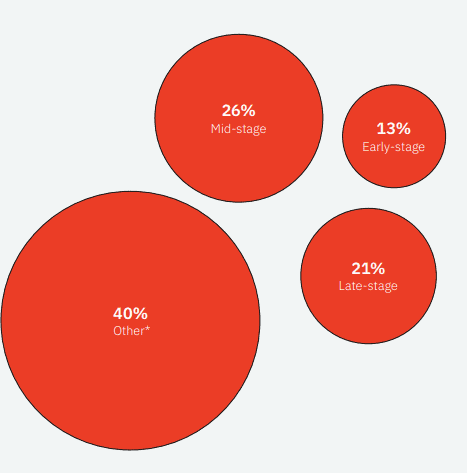 9. 21% of all funding in 2021 went to late stage startups, while 13% went to early stage ones. (iTechArt)