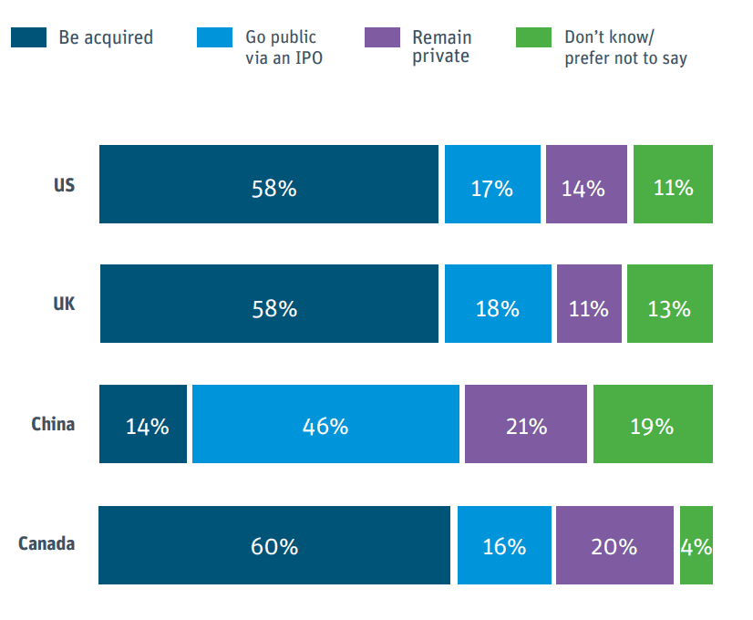 3. As per a survey by Silicon Valley Bank, however, 58% of US startups had acquisition as their exit strategy. (Silicon Valley Bank)