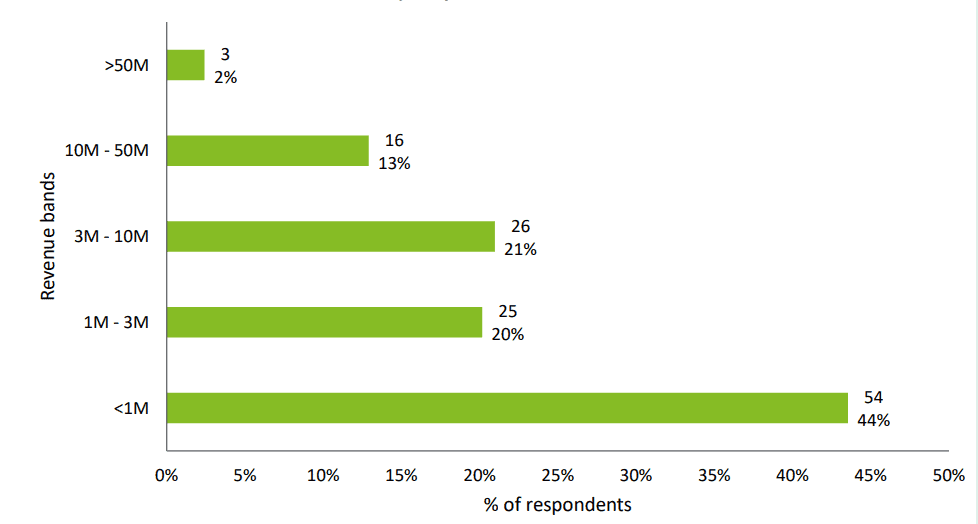 5. 44% of startups had annual revenue of less than $1 million, as per a 2020 survey. (Start and Scale-Ups Confidence Survey)