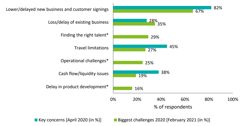 3. 82% of startups said that signing on new customers was their biggest hurdle back in 2020, and for 67% of them, it would remain a problem in 2021. (Start and Scale-Ups Confidence Survey)