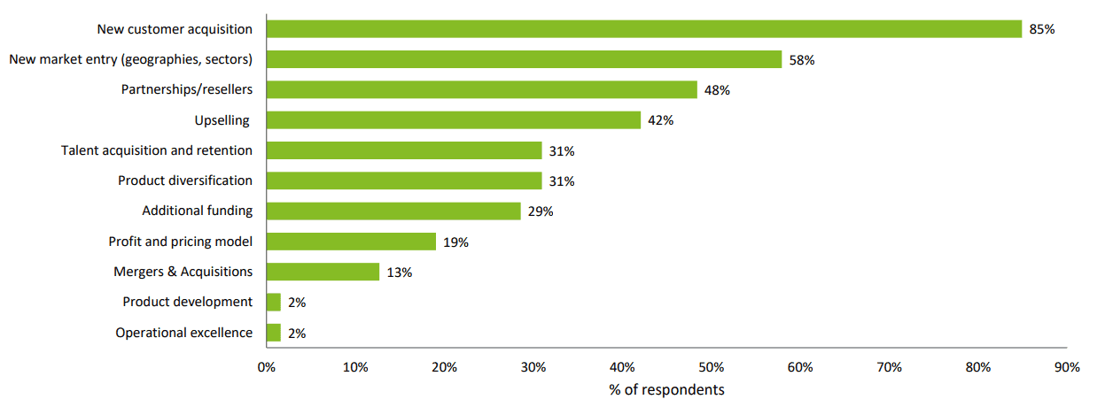 4. New customer acquisition was the major concern for 85% of respondents in achieving their desired growth. (Start and Scale-Ups Confidence Survey)