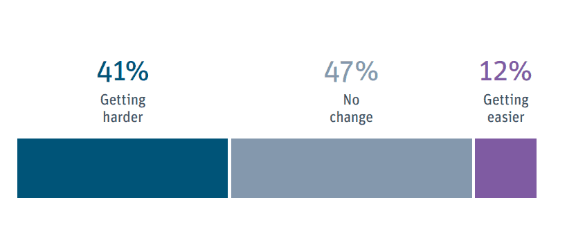 3. When asked what they thought of the funding environment for a startup like theirs, 41% of respondents said that it was getting harder to get funding. (Silicon Valley Bank)