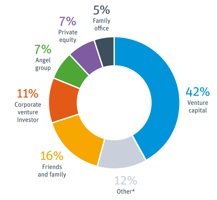 4. 42% of funding for startups came from venture capital funds, as per a 2020 survey. (Silicon Valley Bank)