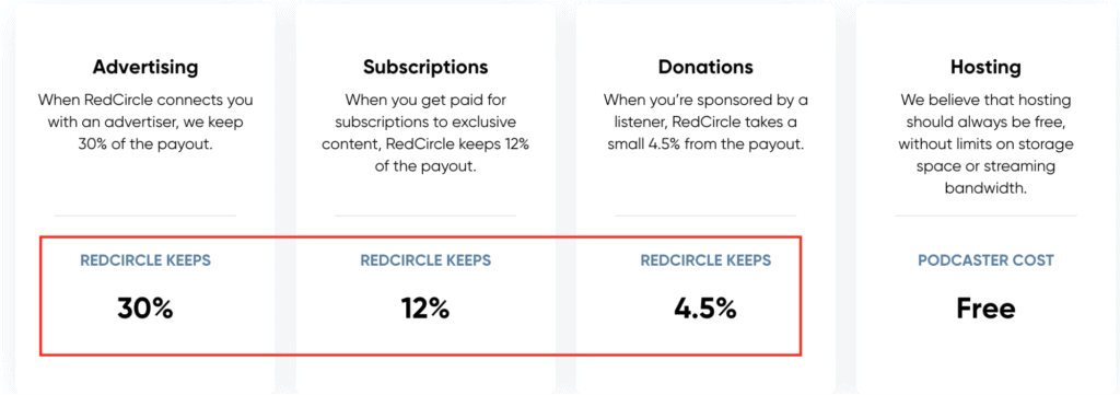 Further the company’s promise in the free plan (visible in the screenshot below) shows its priority has been to support independent podcasters. So you can trust you’re in secure hands.