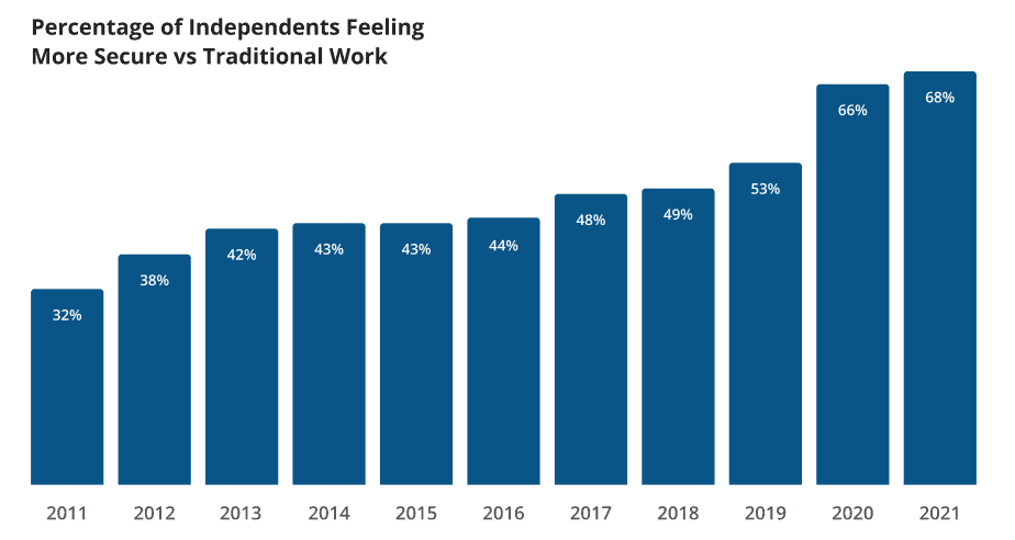 7. 68% of gig economy workers reported feeling more secure than if they had been in a traditional job. (MBO Partners)