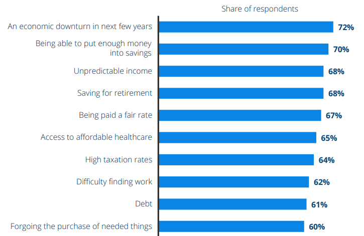 3. An economic downturn in the next few years concerns 72% of freelancers; it is one of the negatives of working on your own. (Statista)