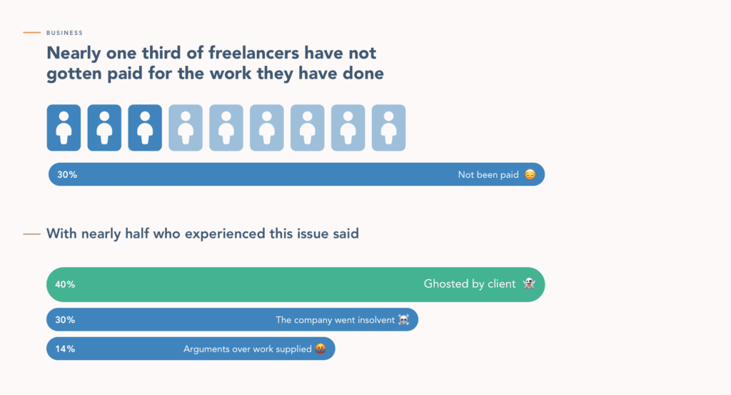 6. 30% of freelancers have, at some point, not received payment for the work they’ve done, gig workers say in a recent survey. (Dinghy)