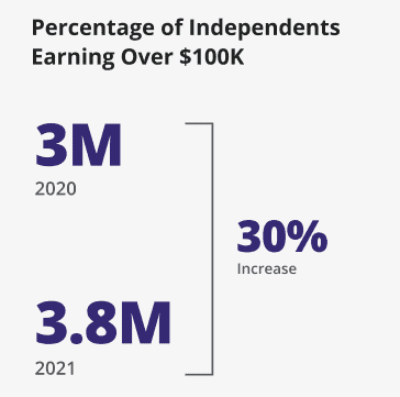 8. 3.8 million gig economy workers reported earning over $100k annually. (MBO Partners)