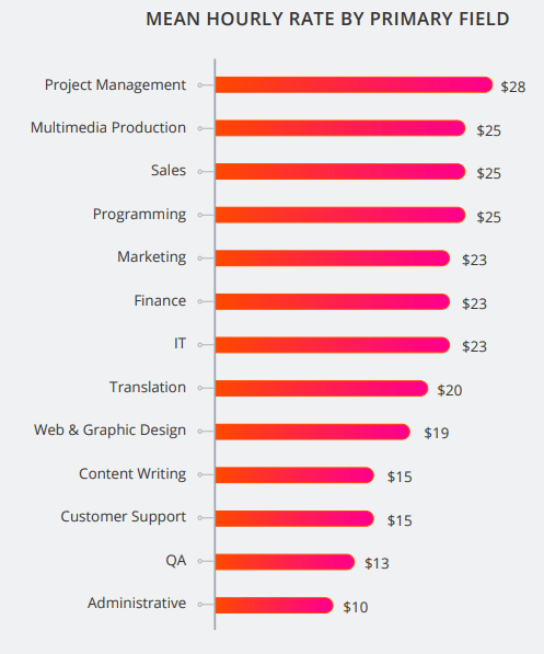 3. The highest-paid gig economy job is project management, spending $28 per hour. (Payoneer)