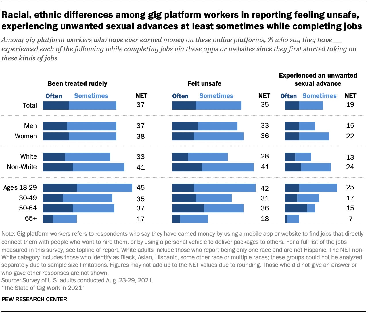 1. 37% of those who have ever earned money in the gig economy said they had been treated rudely, at least sometimes, while doing these jobs. (Pew Research Center)