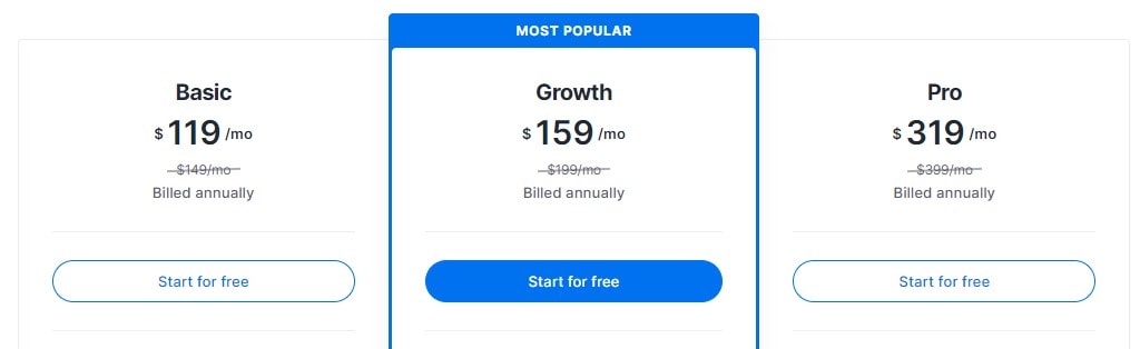 Kajabi has three pricing plan tiers with the cheapest plan starting at $149/month. You get a 14-day free trial on all plans. You get a 20% off on all plans with annual billing.