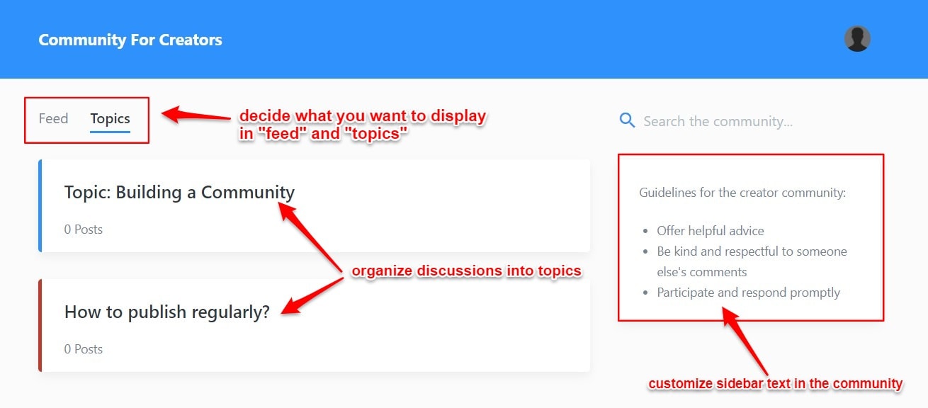 Kajabi allows you to build a community along with your course/membership site. But you can also sell this as a separate product. The community feature is also advanced — allowing you to organize discussions into relevant topics, customize the sidebar, and pin relevant comments.