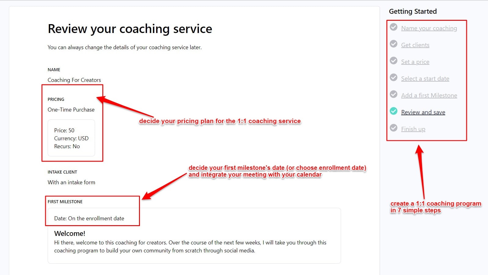 Instead of a native community feature, Teachable offers a coaching program. Here, you can set up meetings 1:1 with your students and decide on the pricing accordingly. It integrates with Calendly and Google Calendar.