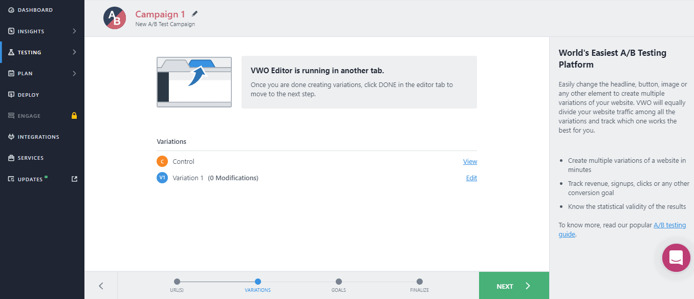 The UI is intuitive and straightforward, and you do not need technical experience to split test headlines, copy, images, etc. VWO gives you one-click access to comprehensive reports and tracking along with individual test reports.