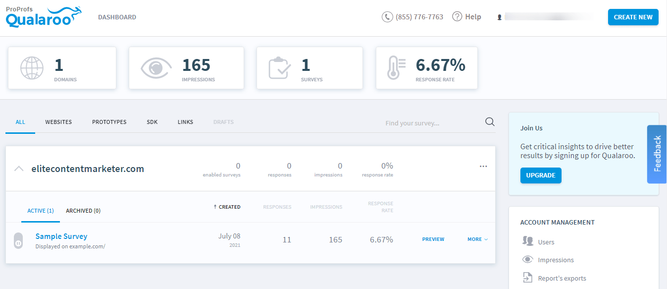 The sample question feature comes at the cost of $1 per credit (response), which is disappointing as you’ll have to pay quite a bit to display your survey.
