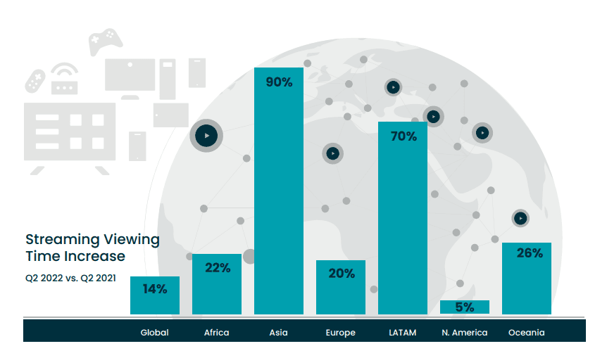 1. Global streaming viewing time was up 14%, as compared to 2021. (Stream Hatchet)