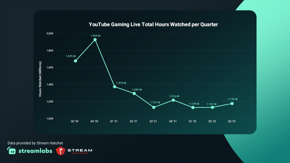 5. Viewers watched 1.176 billion hours of live streams on YouTube Gaming in Q3, up from 1.131 billion hours in the previous quarter. (Streamlabs)