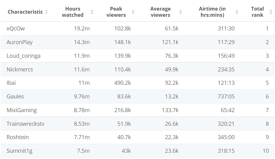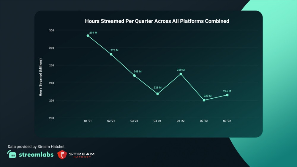 6. Streamers broadcasted 226 million hours of content across all platforms, up from 220 million in the previous quarter. (Streamlabs)