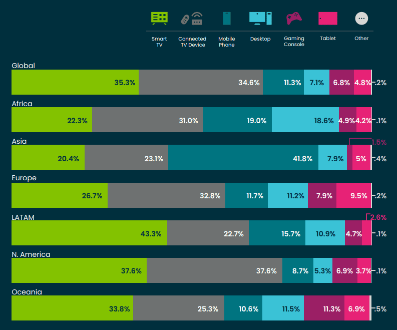 3. 37.6% of all streaming occurred on Smart TVs in North America. (Conviva)